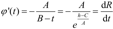 假設(shè): h=φ(t)=Aln(B?t)+C